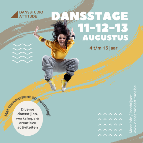 Van 11 t/m 13 augustus organiseren we opnieuw een super toffe 3-daagse zomerdansstage voor dansers van 4 t/m 15 jaar.