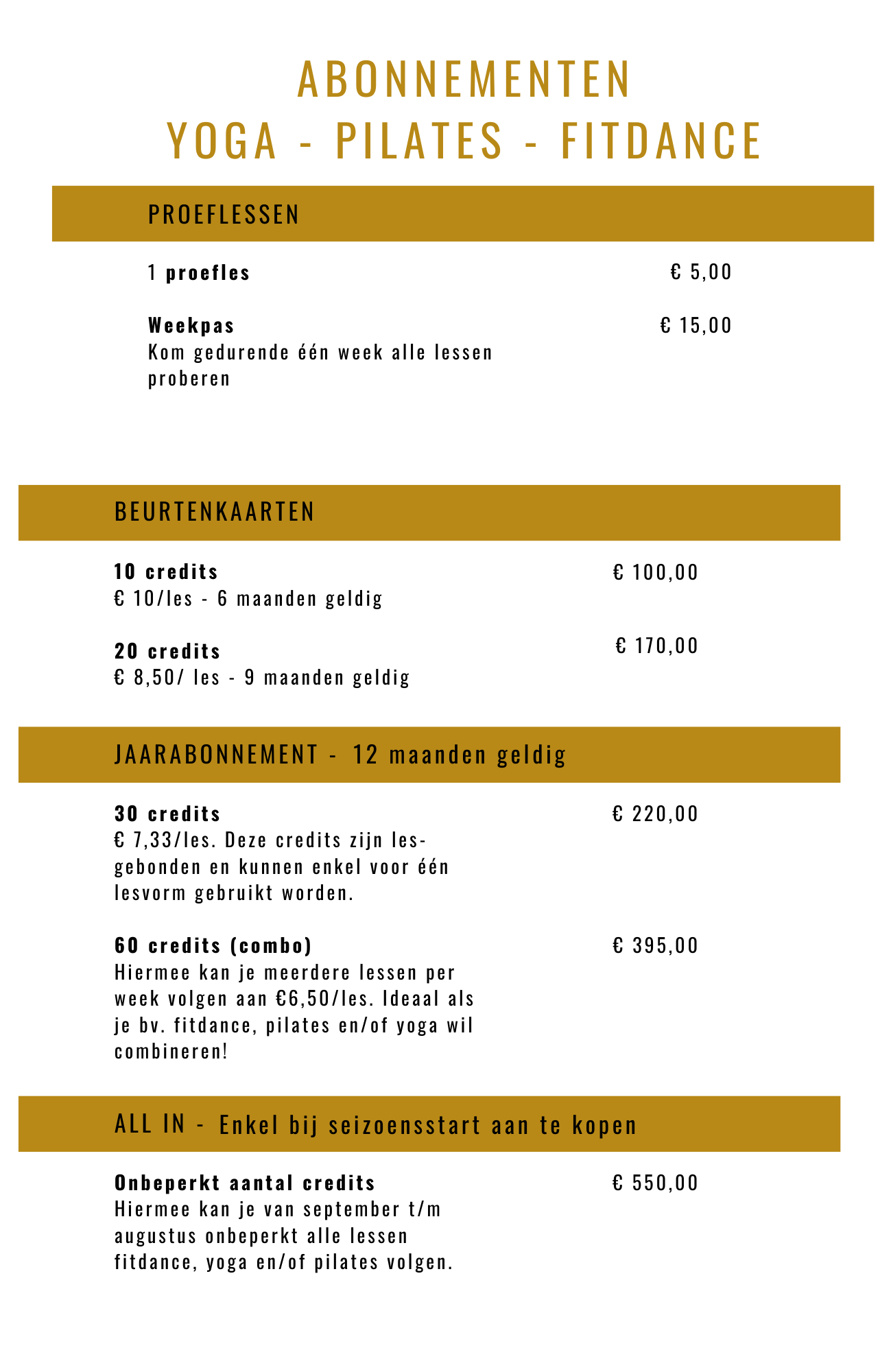 Bovenstaande bedragen mogen van het totaal te betalen lesgeld af gehouden worden.